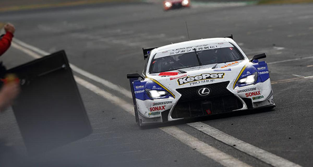 Un moment Motoyama sur la GT-R #46 semblait en mesure de disputer le commandement à Oshima mais les Michelin de la Nissan perdaient alors en efficacité et Motoyama devait laisser passer un Andrea Caldarelli en grande forme sur la Lexus Keeper TOM’S #37 et JP bien revenu sur la GT-R Impul #12. Naoki Yamamoto avait émergé du peloton avec la première Honda, la #18 Wieder Modulo, pour s’installer en 5ème position. La pluie faisait son apparition au 20ème tour, mais ne durait pas et seule la GT-R #46 faisait l’erreur de changer de pneus en pluie, ruinant ses chances. En pleine remontée Hirate sur la Lexus #1 était envoyé dans le bac à sable. Ce n’était définitivement pas le week-end des champions en titre.