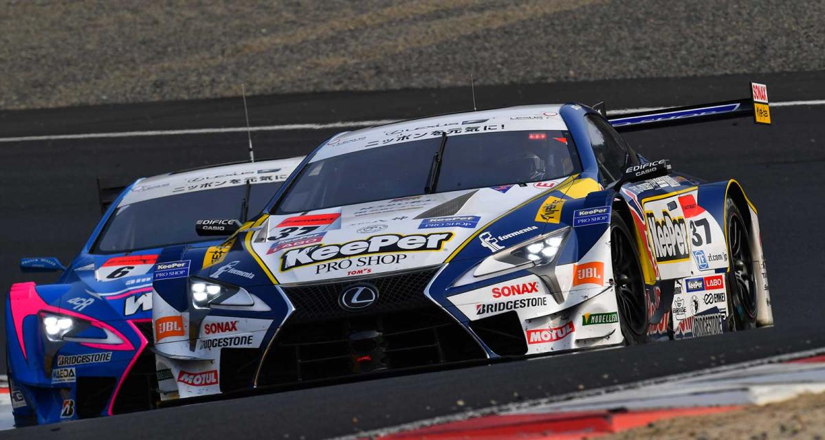 La bataille pour le commandement de la course opposait Nick Cassidy sur la LC500 no37 Keeper-TOM’S frappée du taureau de Red Bull et Kazuya Oshima sur la no6 du team Wako’s-Le Mans, avec la no38 Zent pas loin derrière après avoir tenu la seconde position en début d’épreuve. Les Lexus allaient assurer le spectacle pendant toute la course, en bataillant deux par deux aux six premières positions : La no37 et la no6, la no1 et la no38, et la no36 et la no19.