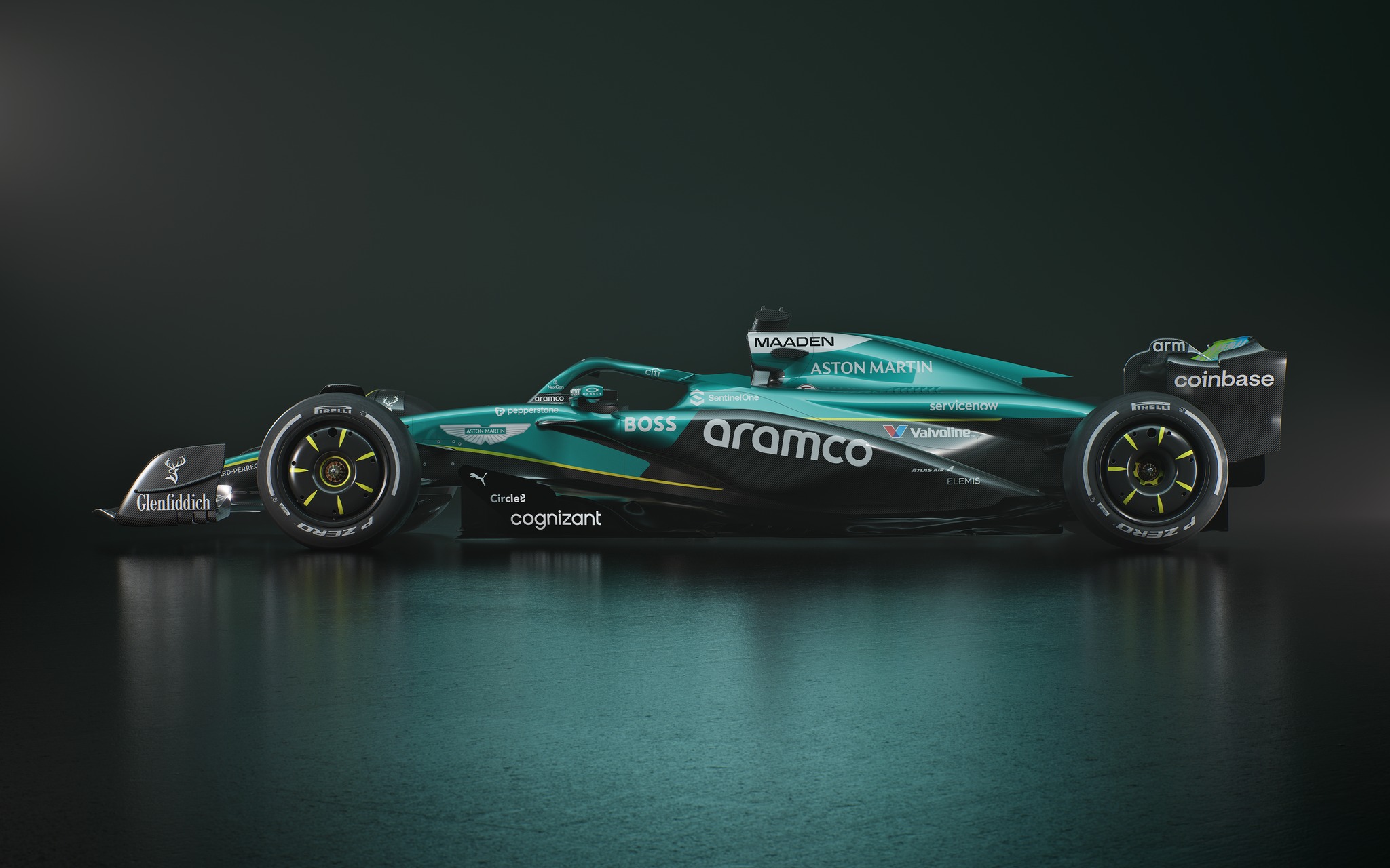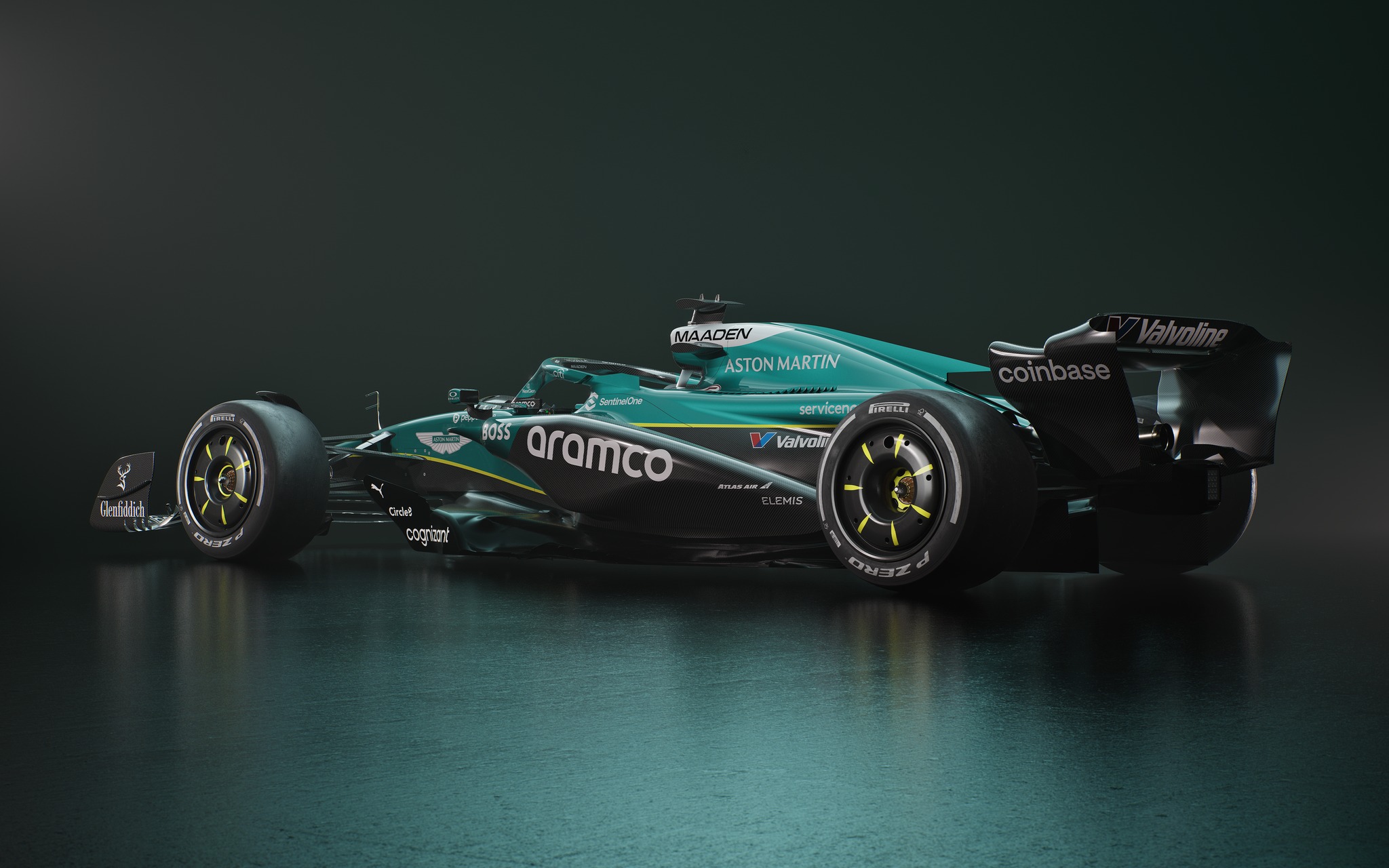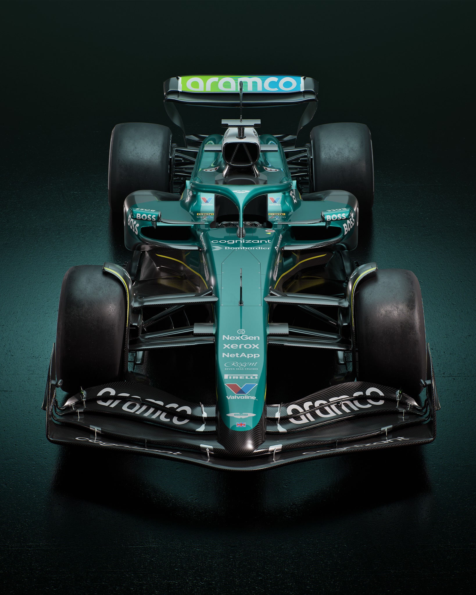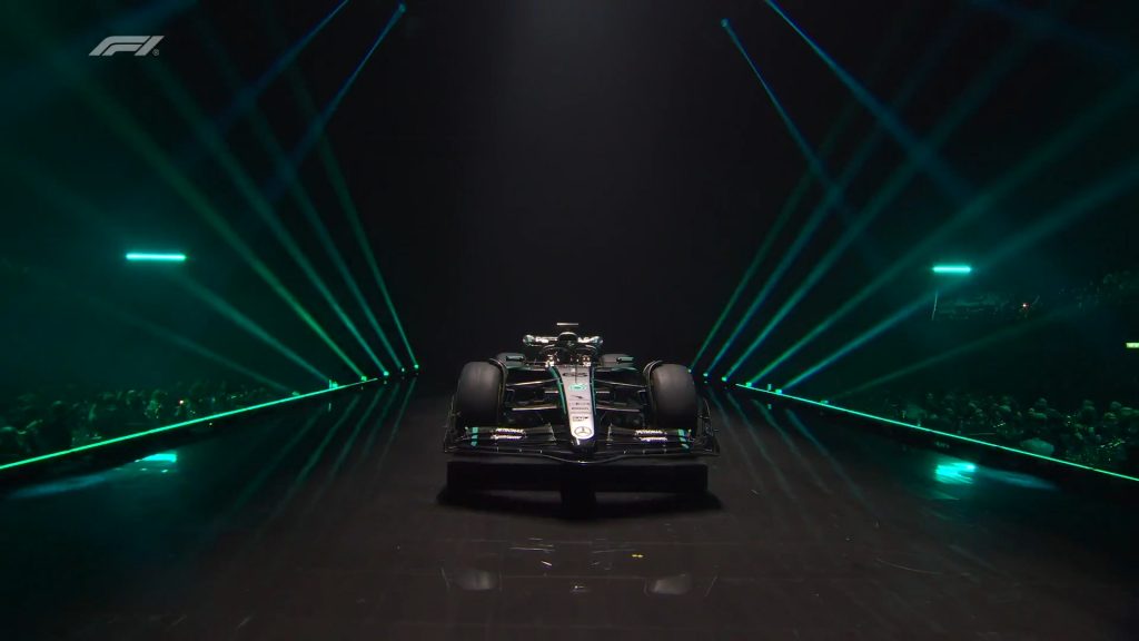 Le British Racing Green est de mise évidemment, mais plus de noir aussi, notamment sur les pontons. C’est la dernière année avec Mercedes, avant de passer chez Honda en 2026.