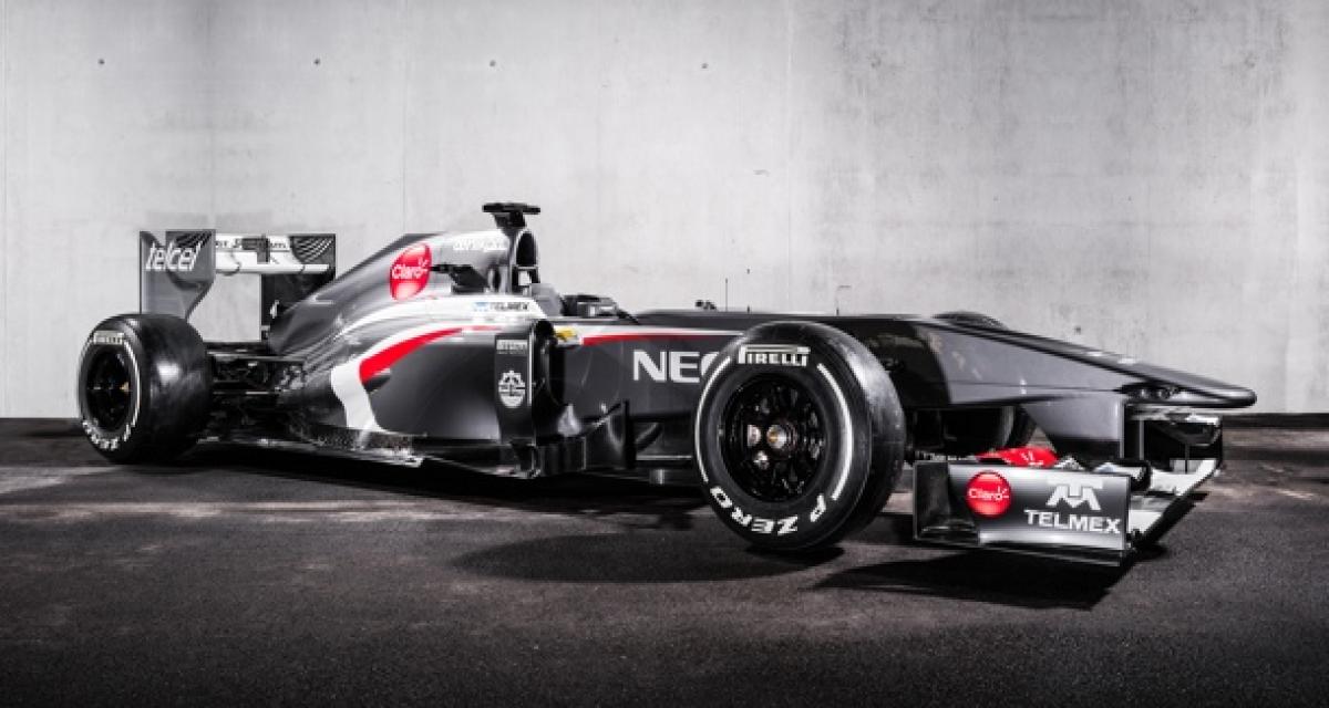 Le plus évident sur la nouvelle voiture concerne le changement de livrée, qui revient au gris anthracite des débuts de Sauber en F1 alors que les sponsors restent essentiellement identiques malgré le départ des pilotes de l’année dernière remplacés donc par Nico Hulkenberg arrivant de Force India, le rookie Esteban Gutierrez qui devient titulaire après avoir été pilote de réserve la saison dernière et le troisième homme Robin Frijns.