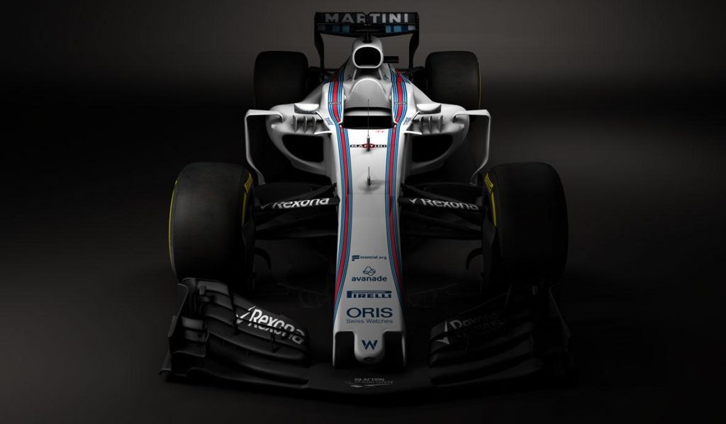 En effet, l’écurie actuelle s’est engagée en F1 en 1977 (*). Pour Williams c’est donc une date anniversaire importante et c’est pour cela que la monoplace s’appelle officiellement FW40. Visuellement, elle répond au nouveau règlement avec un aileron avant plus éloigné de l’essieu avant, un aileron avant en forme de « triangle » vu de devant, et de « banane » vu de dessus. Surtout, on a un aileron arrière aux montants qui ne sont plus droits pour pouvoir l’abaisser entre les énormes roues arrières tout en étant plus large.