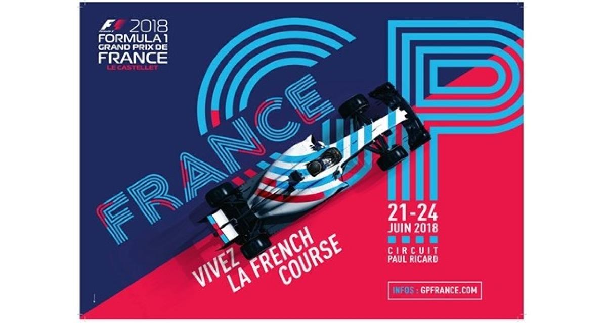 Enfin, l’affiche du Grand Prix reprend les couleurs caractéristiques du circuit, à savoir le rouge et le bleu, et arbore un slogan « Vivez la French course ».