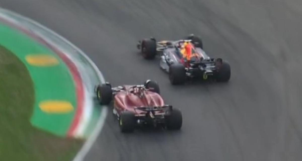 Verstappen a le DRS. Leclerc attaque à fond, il glisse. Pression maximale. Ses pneus doivent surchauffer.