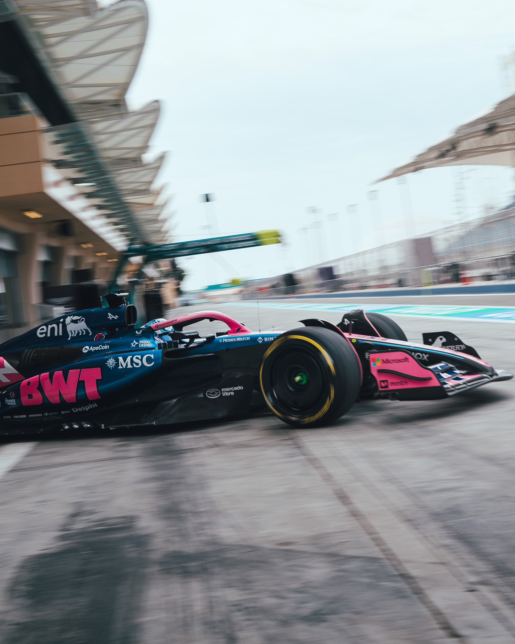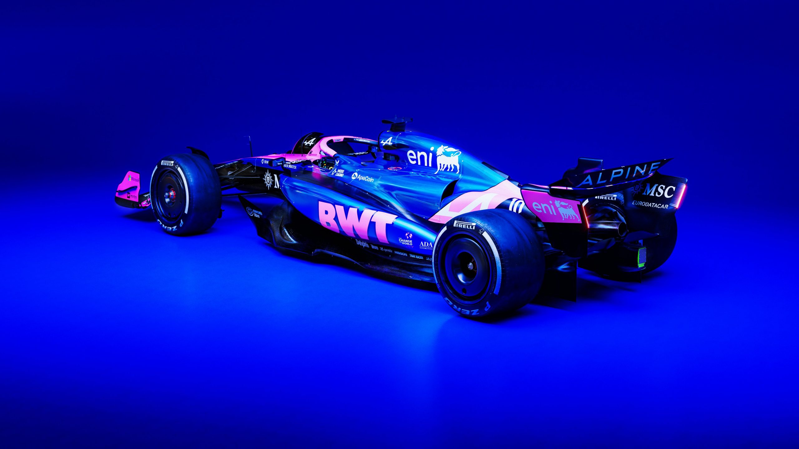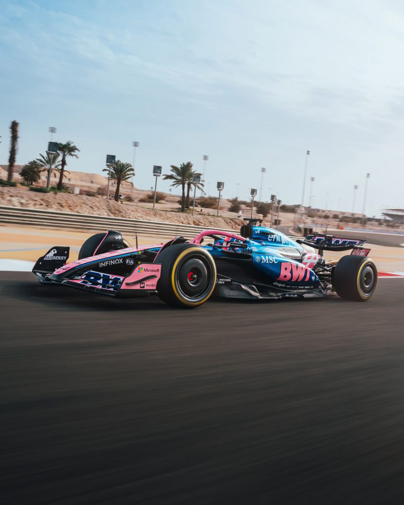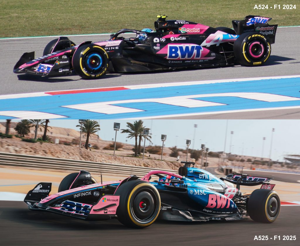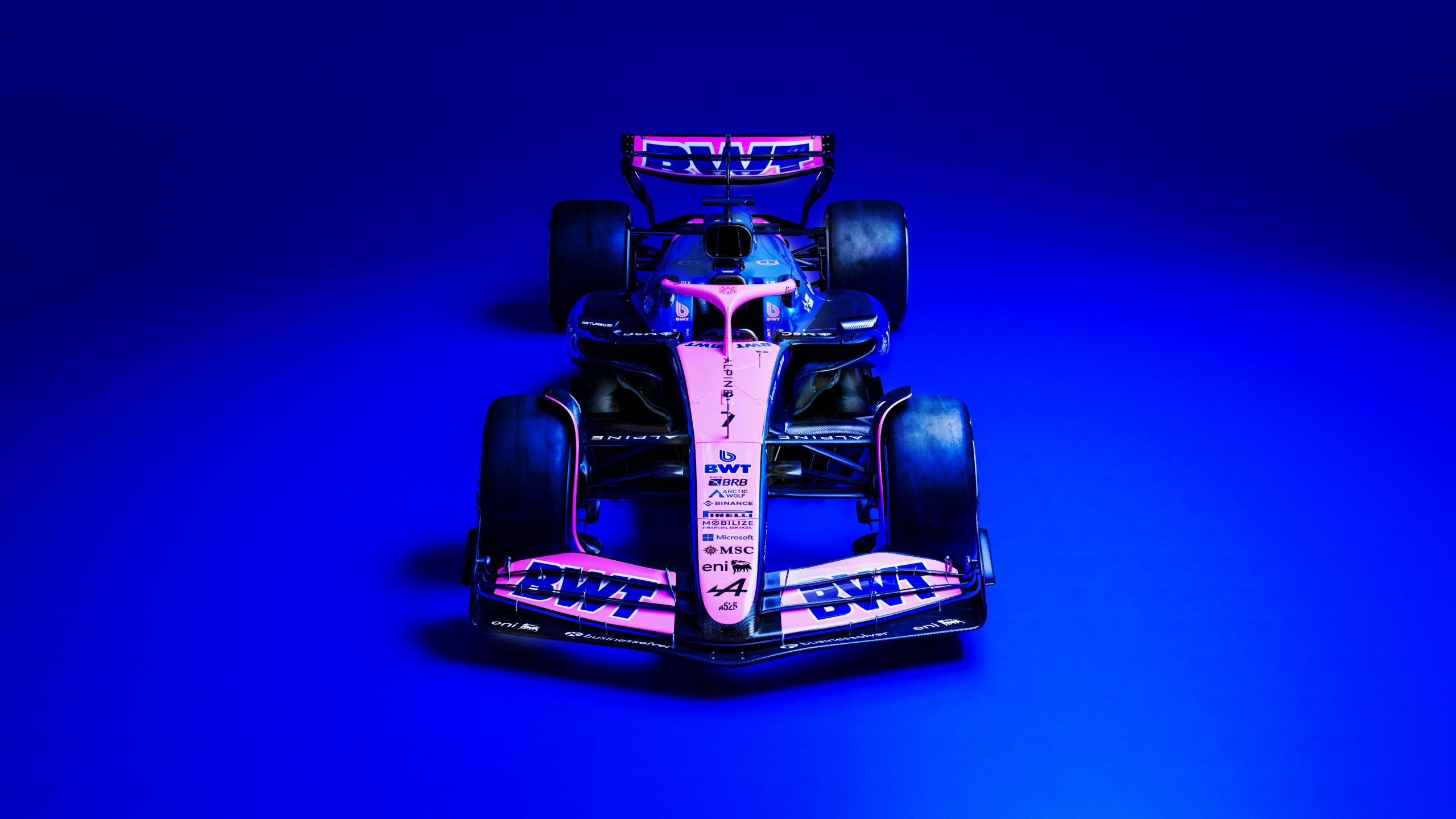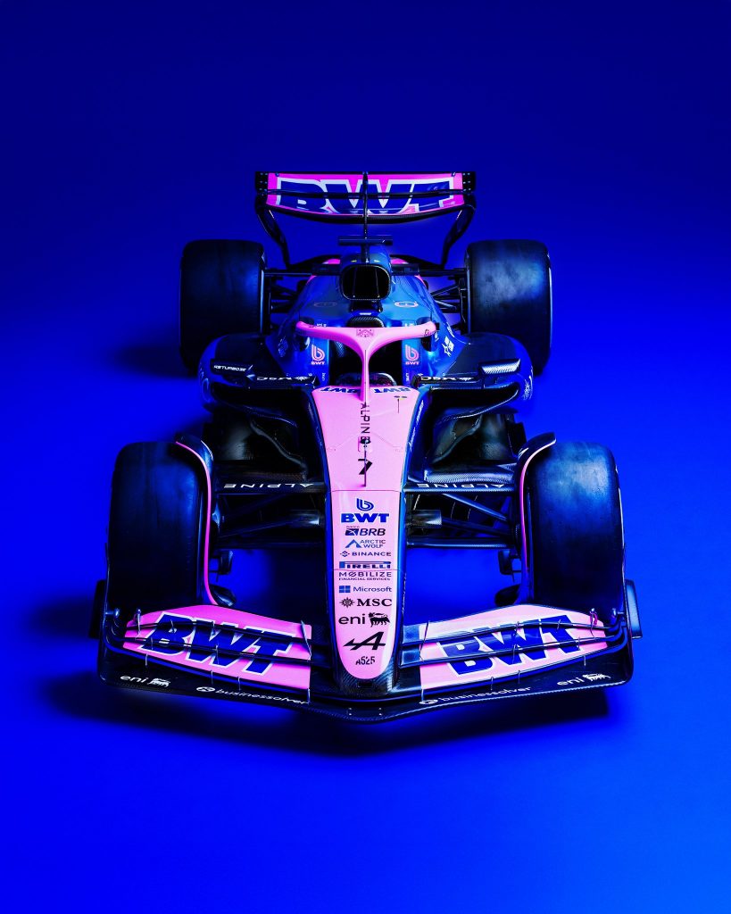 Pour la livrée, on peut apprécier la grande place du chien à six pattes d’ENI. Le pétrolier revient en F1 et à Enstone (déjà avec Benetton à l’époque). On peut aussi remarquer que BWT a une grande place (sponsor titre oblige) et qu’il n’y a plus du tout de mention de Renault sur la voiture. Un « Mercado Libre » annonce la présence de Franco Colapinto dans l’écurie.
