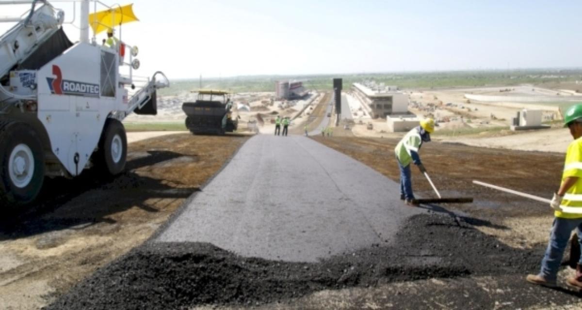 Le grand-prix des Amériques qui se déroulera à Austin au Texas aura lieu du 16 au 18 novembre 2012. Pour l’instant les préparatifs vont bon train pour le circuit qui sort littéralement de terre. Une grande étape se déroule en ce moment avec la pose du revêtement. De quoi commencer à prendre conscience du dénivelé impressionnant du circuit.
