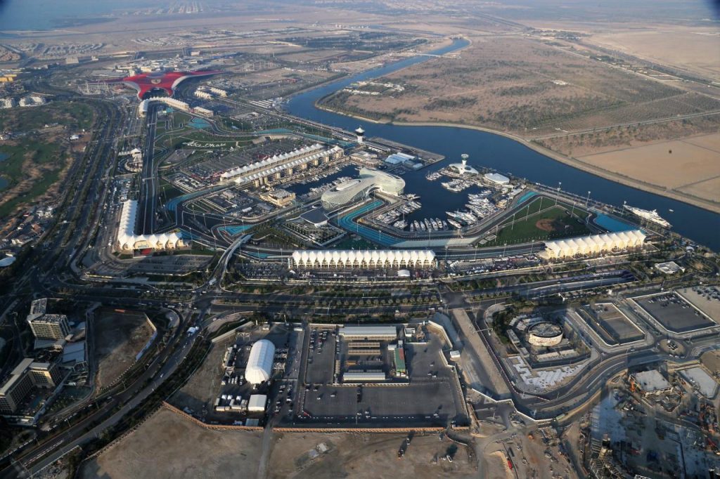 Le circuit n’arrive pas seul sur l’île de Yas, il est au coeur d’un complexe consuméro-luxuo-sportif avec la marina, le Ferrari World, l’immense mall, des habitations luxueuses, des hôtels, complexes sportifs, etc. Dessiné par Tilke, le circuit épouse en partie la forme de la marina, et la piste est enjambée par un hôtel revêtu d’une « peau » lumineuse du plus bel effet la nuit venue. La sortie des stands se fait par un tunnel qui oblige à la prudence en pneus froids.