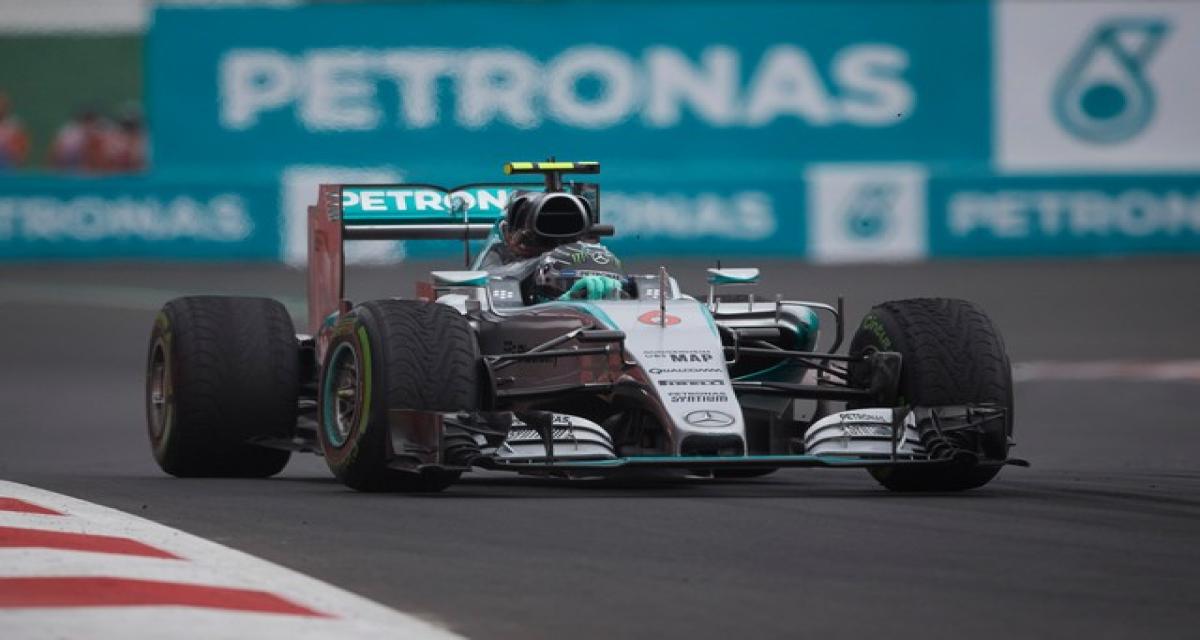 Tour 57: Drapeau vert. Rosberg ne se fait pas piéger contrairement à Kvyat qui perd sa troisième place au profit de Bottas.