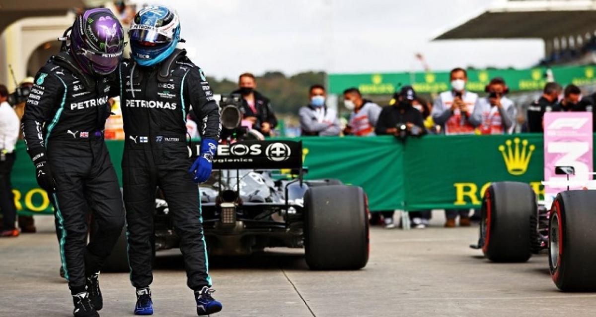 Même si la pénalité remet tout en cause, Hamilton est intouchable en Q3. Dans le 1er tour lancé, Hamilton signe 1:23.093… puis Bottas fait mieux en 1:23.071 grâce à un superbe 1er secteur. Derrière les deux Mercedes, Verstappen est à 2 dixièmes, devant Gasly, Perez, Alonso, Norris, Leclerc, Tsunoda et Stroll.