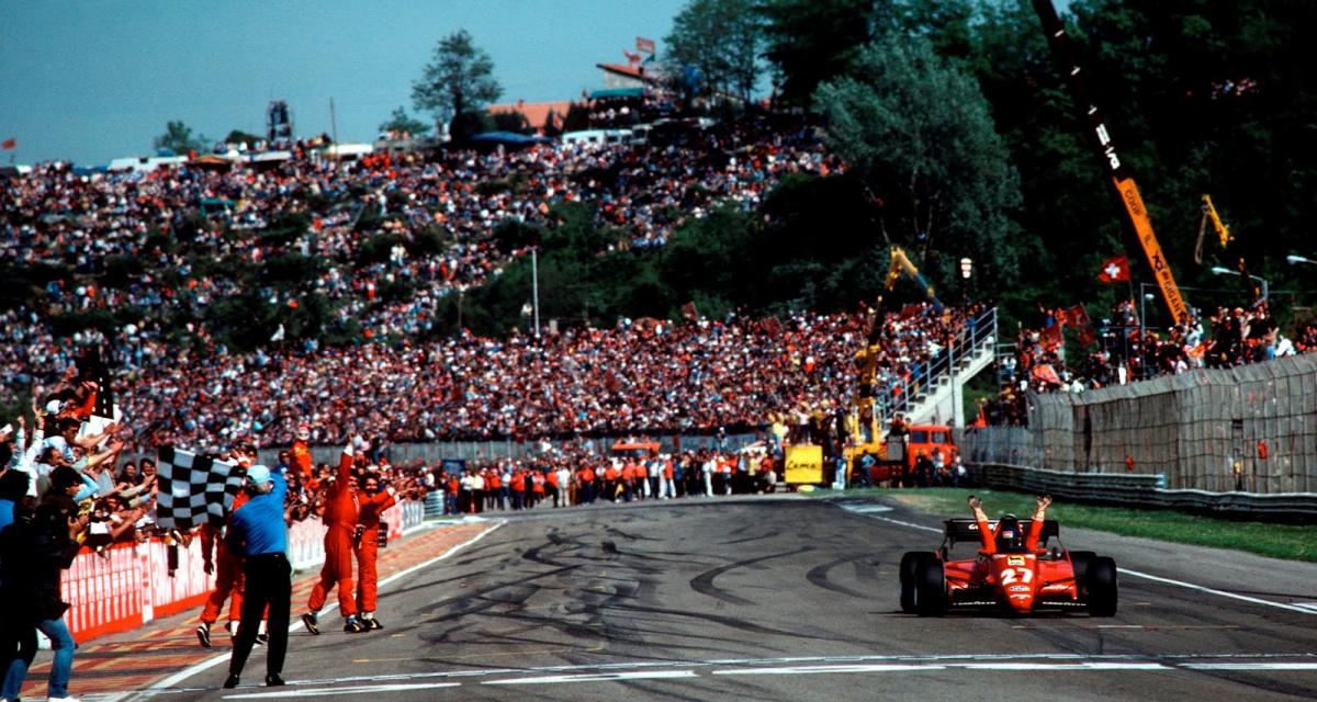 En 1983, la Scuderia est décidément très francophone puisque Tambay a été logiquement reconduit et fait équipe avec un autre tricolore, René Arnoux, qui a quitté Renault après une cohabitation tendue avec Alain Prost. Le 4e grand prix de la saison se dispute le 1er mai sur le circuit d’Imola, un circuit rapide où la puissance des moteurs turbo peut s’exprimer pleinement. Ferrari n’a pas encore réalisé de résultat significatif mais Arnoux a réalisé la pole devant la Brabham BMW de Nelson Piquet, 3 millièmes seulement devant Tambay. Sur la grille de départ, on aperçoit dans les tribunes des drapeaux canadiens et beaucoup d’encouragements pour Tambay, qui doit, selon un écriteau « gagner pour Gilles » ou même, sur d’autres, le « venger ». Les tifosis n’ont bien sûr pas oublié leur « petit prince » de la F1. Villeneuve était adulé et sa perte reste une terrible déchirure. L’émotion envahit le français, bien décidé à jouer sa chance.