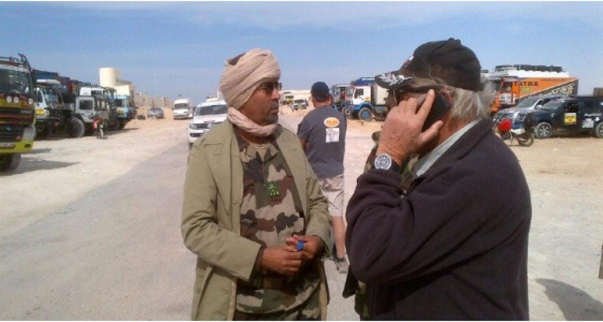Cette édition de l’Africa Race en est à la moitié et rien n’est complètement joué au général. A la moindre erreur tout le monde peut perdre gros. La 6ème étape était longue de 575 km mais était surtout composée de liaison par la route. Après une première portion pour rejoindre la Mauritanie, il a fallu toute la patience et les talents de négociations de René Metge (photo 1) pour passer la douane. Décidément les passages douaniers n’auront pas été une partie de plaisir cette année. Une fois la frontière passée, les concurrents ont attaqué une spéciale de 161 km faite de sable et d’herbe à chameaux. Vainqueur de l’étape précédente, Pélichet part en premier et ouvre la piste. Enfin Schlesser lui laisse ouvrir la piste et le garde à portée de tir.