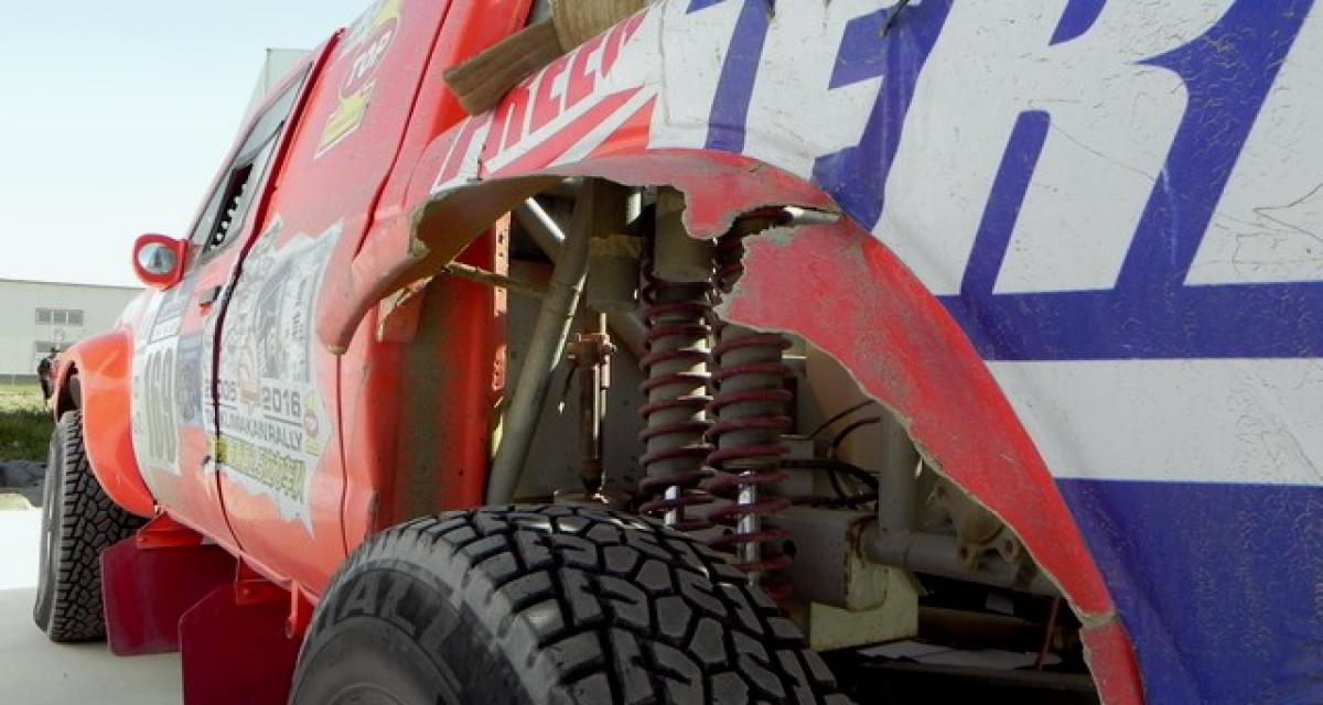 Tous n’ont pas eu cette prudence. Les camion-balais se remplissent : un Pajero de Hell Kitty (NDLA : ce n’est pas une photo de frappe), l’un des Zotye, l’un des BMW X3, un pick-up Isuzu et l’un des faux-Touareg ont du renoncer. Qiemo, c’est aussi la deuxième journée de repos. Le bivouac commence à être clairsemé : le team iKart, les protos Dessoude et le dernier buggy Liban ont disparu. Par contre, les deux Hong Qi sont toujours là ! Certaines carrosseries témoignent des incidents. Certains véhicules semblent nickel, mais en fait, suite à un carton, les panneaux tordus ont été remplacés par du neuf…