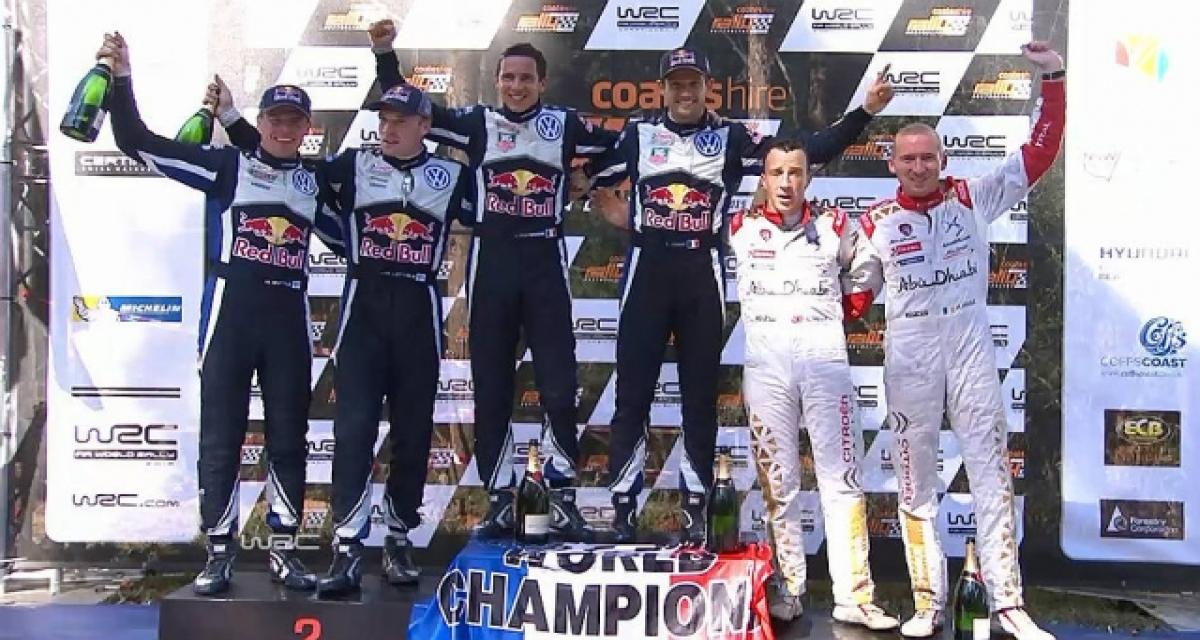 Avec cette victoire, Ogier et Ingrassia ne peuvent plus être rejoints au championnat du monde. Même si cela laissait peu de doute, ils sont mathématiquement triple champions du monde WRC. Bravo à eux ! Ils pourront fêter ce troisième titre consécutif en France au rallye de Corse du 1 au 4 octobre sur asphalte. Avec la non participation de Ostberg, Mikkelsen assoie sa troisième place derrière Ogier et Latvala et VW se dirige vers un triplé au championnat. Au championnat constructeur, Citroën revient à 4 points de Hyundai pour la 2nde place.